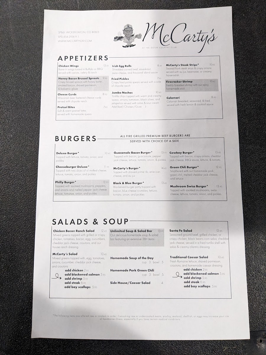 Welcome to McCarty's at Eaton Country Club, where culinary excellence meets a welcoming atmosphere. Nestled at 37661 Co Rd 39, this restaurant boasts an extensive menu that caters to diverse tastes, perfect for a day of leisure or dining with friends.